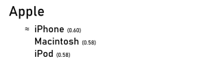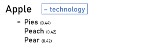 As our corpus comprised news articles, the word apple would have likely been associated with media reports on one of the world’s most valuable company. If we had wanted to refer to the fruit, one quick fix would be to declare a negative association with technology: